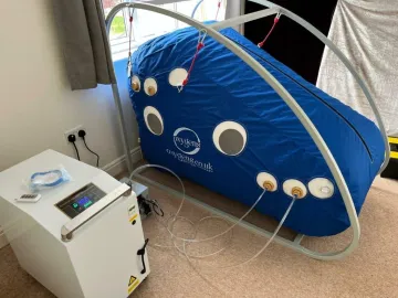 Гипербарические кислородные камеры значительно более эффективны, поскольку они имитируют давление, испытываемое под водой, что увеличивает поглощение кислорода в организме в соответствии с законом Генри. Это повышенное давление позволяет растворять большую концентр