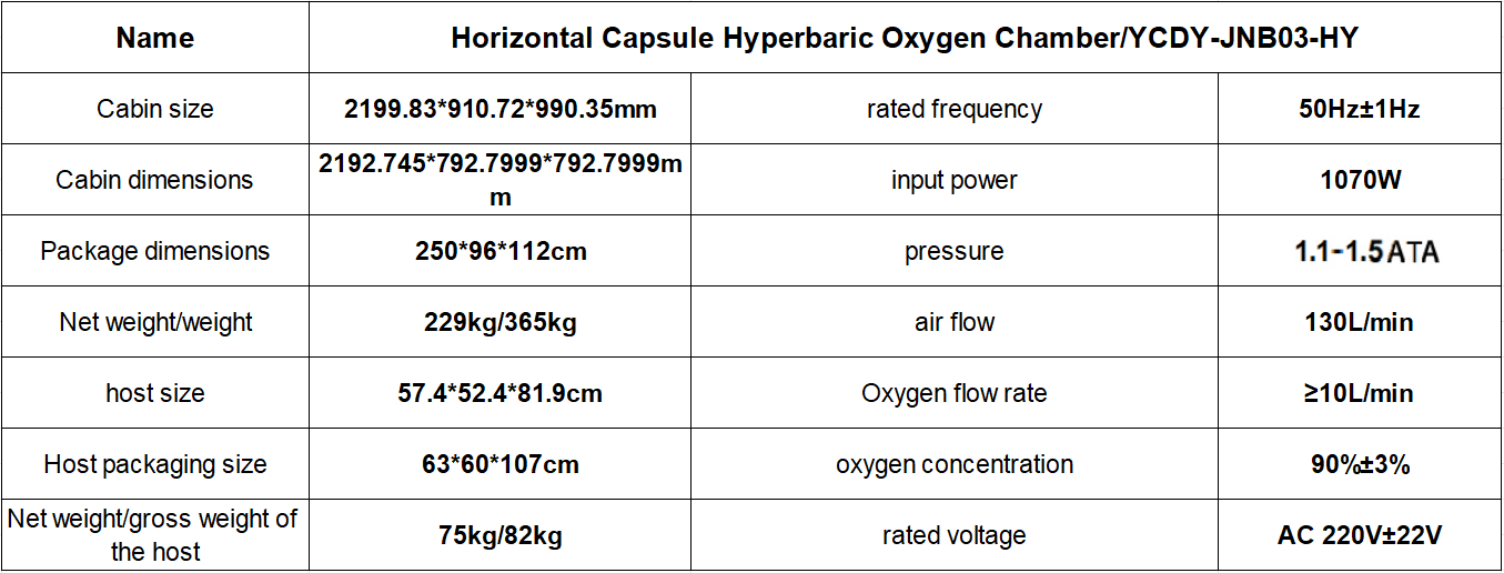 Горизонтальная капсульная гипербарическая кислородная камера YCDY-JNB03-HY